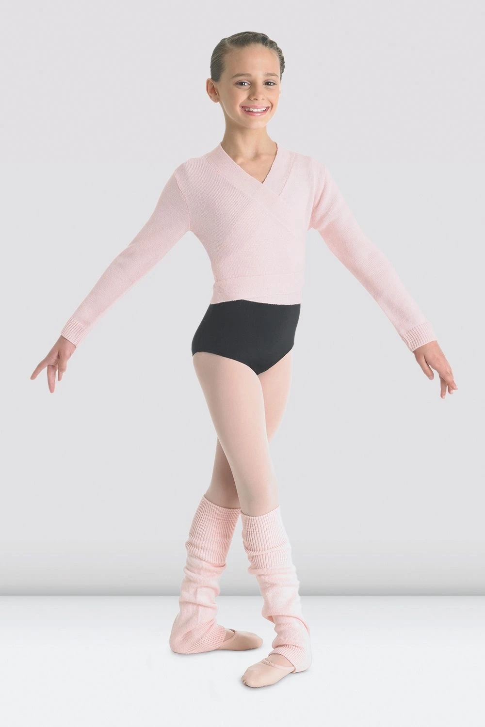 Girl’s wrap knit cross over sweater is the perfect pick for the young dancer. This classic ballet dance staple is ideal for warming up and going to and from classes.