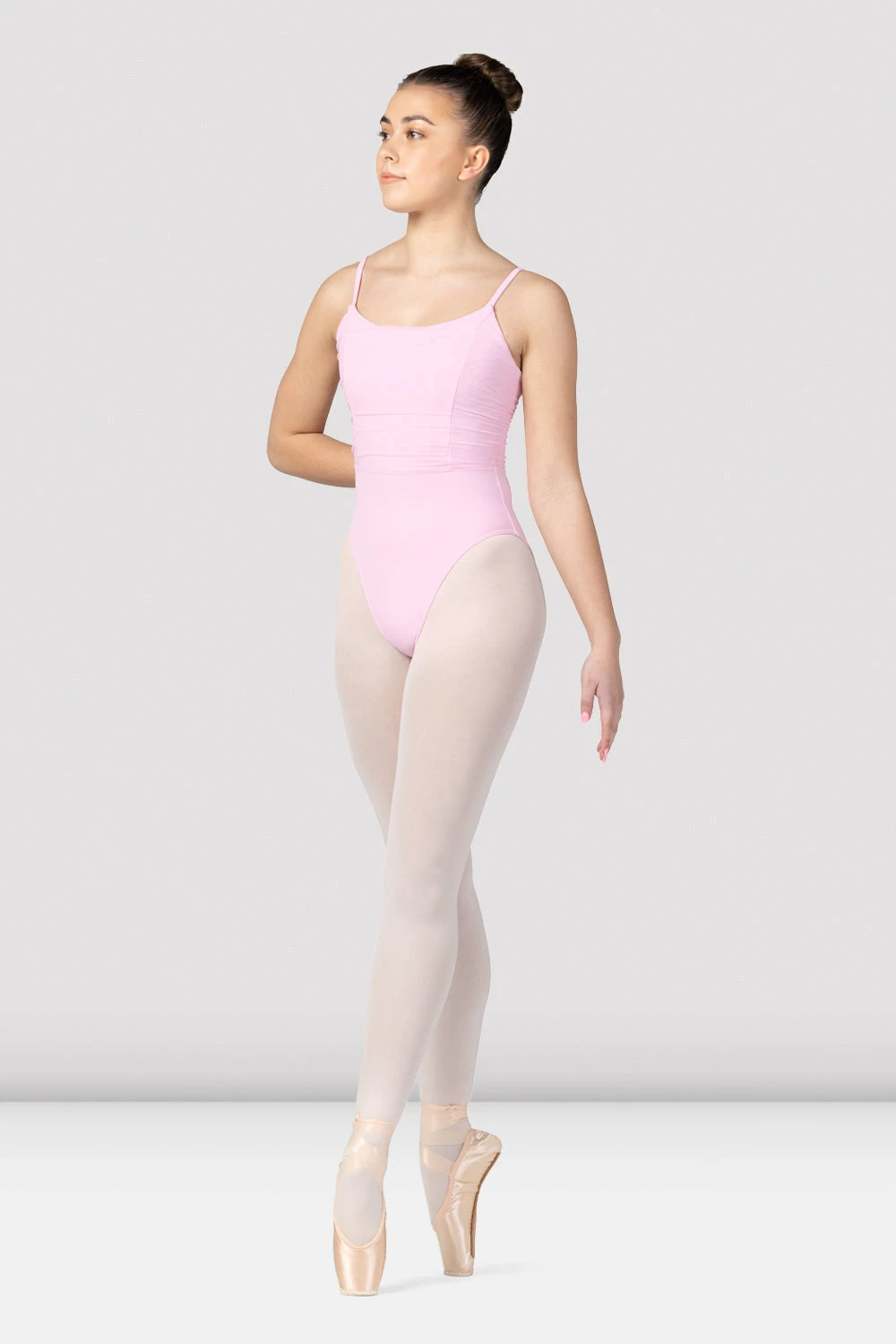 Tantalise the senses with sweeping soft textures, the Franca leotard details an embellished bodice of sheer mesh that drapes across the bust with a romantic ruched design. The princess and mid-section seams tailor the bodice for a superior and flattering fit.